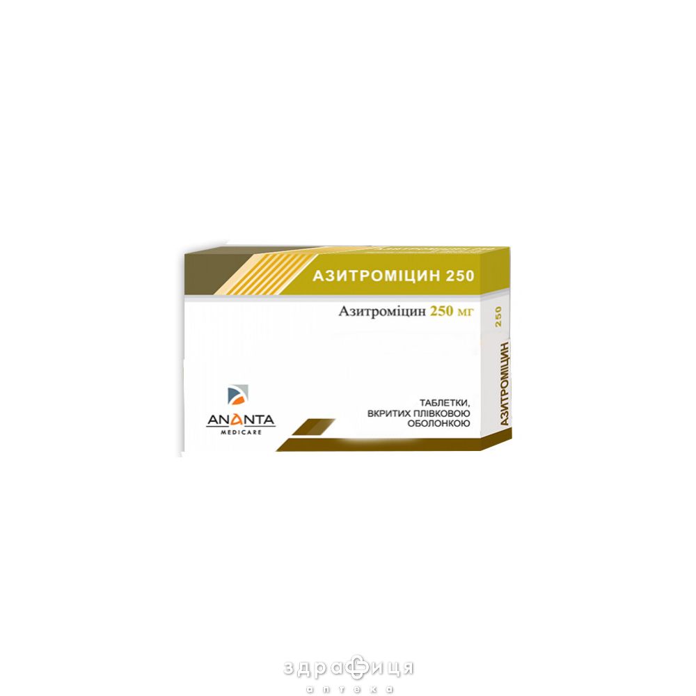 Склад | 1 таблетка, вкрита плівковою оболонкою, містить азитроміцин, еквівалентний 250 мг азитроміцину безводному |