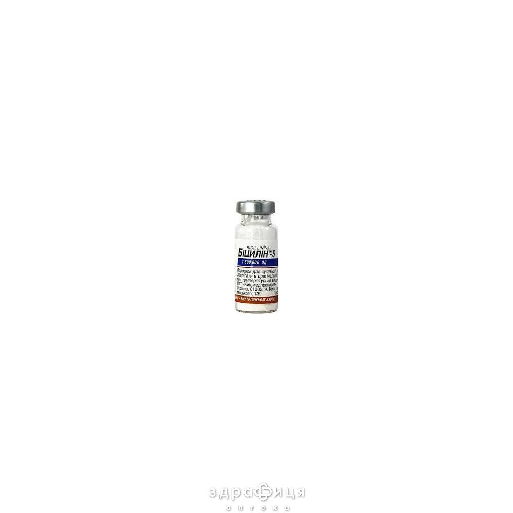 1 флакон містить: біцилін-5, порошок 1500000 ОД (суміш бензатину бензилпеніциліну стерильного (біцилін-1) – 1200000 ОД, бензилпеніциліну новокаїнової солі стерильної – 300000 ОД).
