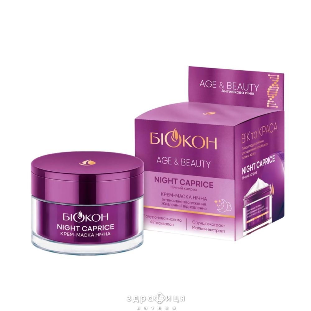 Нічна крем-маска Біокон Age&Beauty Night Caprice — ідеально гладка, оксамитова та відновлена шкіра, що сяє здоров’ям.
