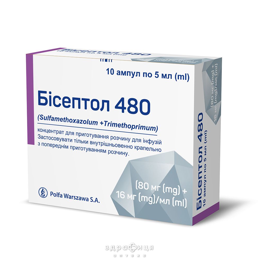 | Склад | 1 мл концентрату містить сульфаметоксазолу 80 мг, триметоприму 16 мг, /1 ампула (5 мл концентрату) містить: сульфаметоксазолу 400 мг і триметоприму 80 |