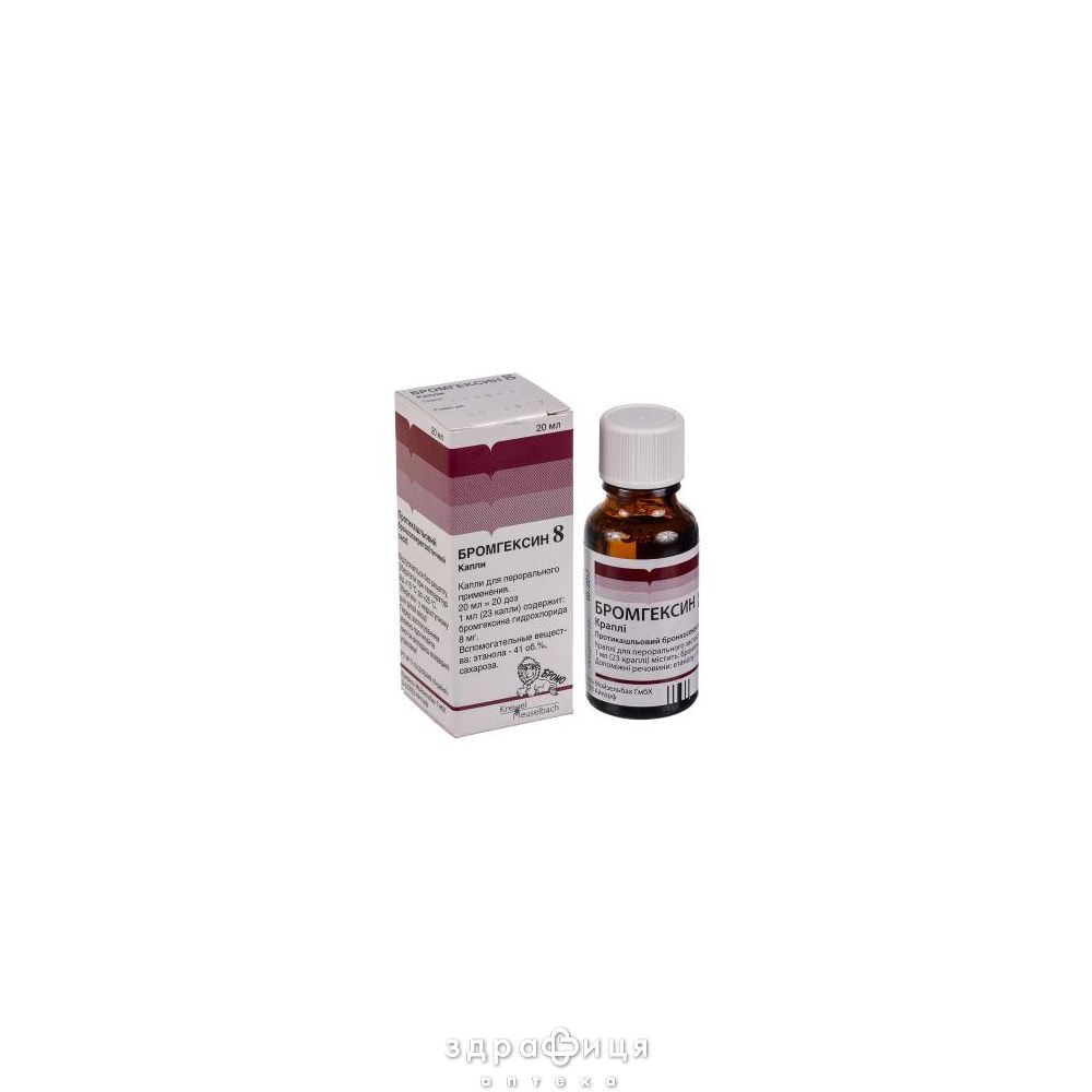 Склад | 1 мл (23 краплі) розчину містить бромгексину гідрохлориду 8 мг |