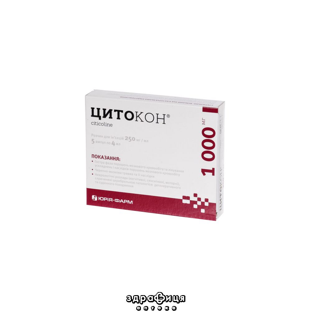 1 мл містить цитиколіну натрію у перерахуванні на цитиколін 250 мг;/1 ампула (4 мл) містить цитиколіну 1000 мг.