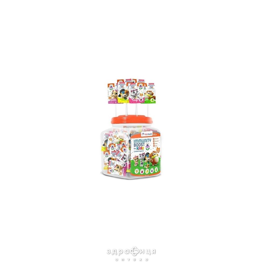 Цукор, глюкоза, лимонна кислота, вітаміни: Вітамін С (L-аскорбінова кислота), ехінацея, рутин, цинк, вітамін D3 (холекальциферол), ароматизатори, концентровані фруктові соки (лохина, виноград, малина, лимон, яблуко) – 0,2 %, бетанін, куркумін, мідні комплекси хлорофілів та хлорофілінів.