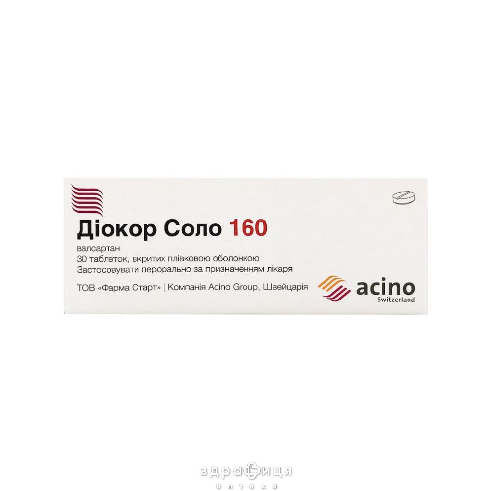 Дiокор соло 160 призначений для лікування гіпертонії та серцево-судинних захворювань. Він допомагає знизити артеріальний тиск, поліпшити роботу серця та запобігти ускладненням, пов'язаним з високим тиском.
