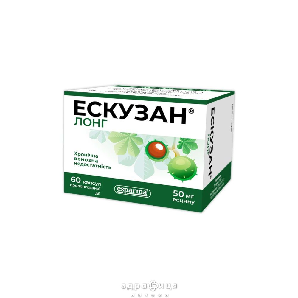 За даними попередніх досліджень було показано, що до 0,11 % препарату Ескузан® лонг, капсули пролонгованої дії по 50 мг, при пероральному застосуванні відтворюється в сечі у вигляді незміненого есцину. Низькі рівні ниркового кліренсу (4,8 мл/хв) показують, що процес виведення есцину при пероральному застосуванні, головним чином, відбувається завдяки біотрансформації зовнішнім шляхом, можливо у крові і печінці. Есцин можна повністю вивести з організму за допомогою гемодіалізу.