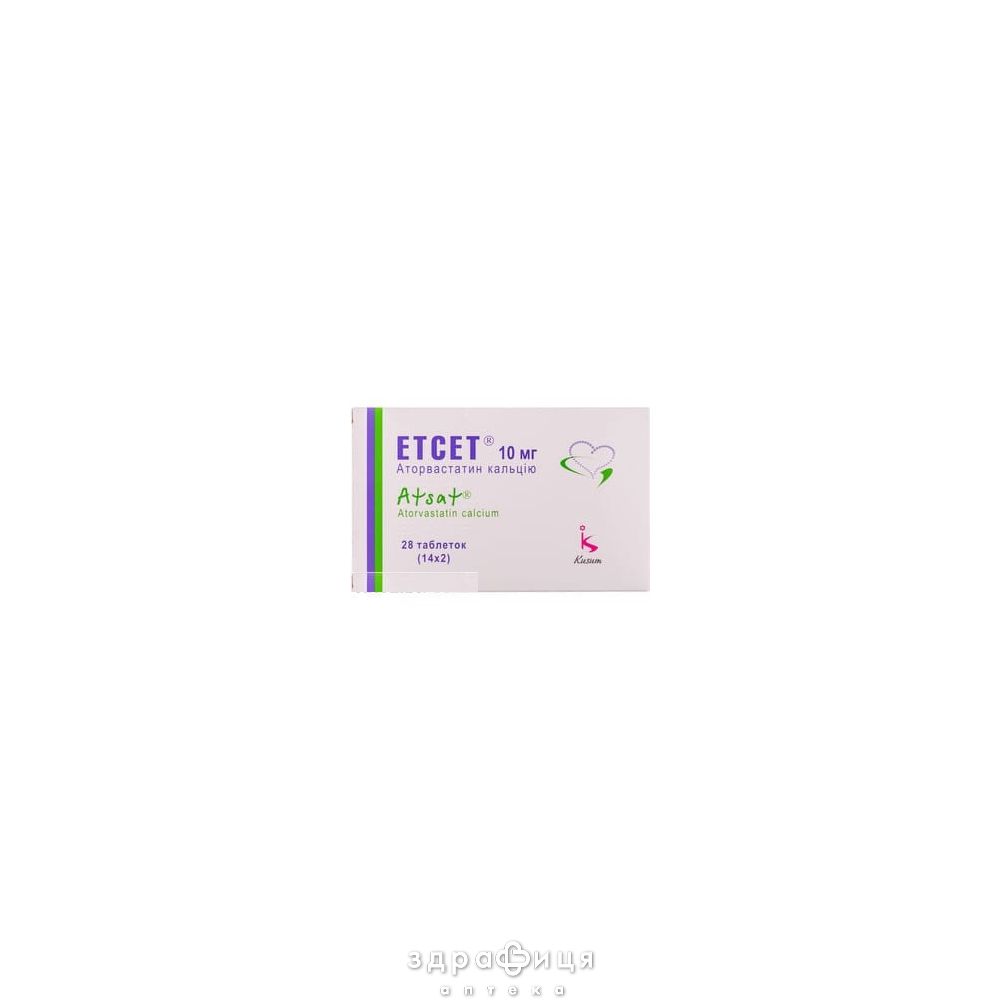 Етсет® містить активну речовину аторвастатин. Аторвастатин є селективним конкурентним інгібітором ГМК-КоА-редуктази – ферменту, що визначає швидкість перетворення 3-гідрокси- 3-метил-глютарил-коензиму A у мевалонат, що є попередником стеролів, зокрема холестерину. Тригліцериди (ТГ) та холестерин у печінці вбудовуються у молекули ліпопротеїнів дуже низької щільності (ЛПДНЩ), надходять до плазми крові і транспортуються до периферичних тканин. Ліпопротеїн низької щільності (ЛПНЩ) утворюється з ЛПДНЩ і катаболізується головним чином шляхом взаємодії з високоафінними рецепторами ЛПНЩ (ЛПНЩ-рецептори).