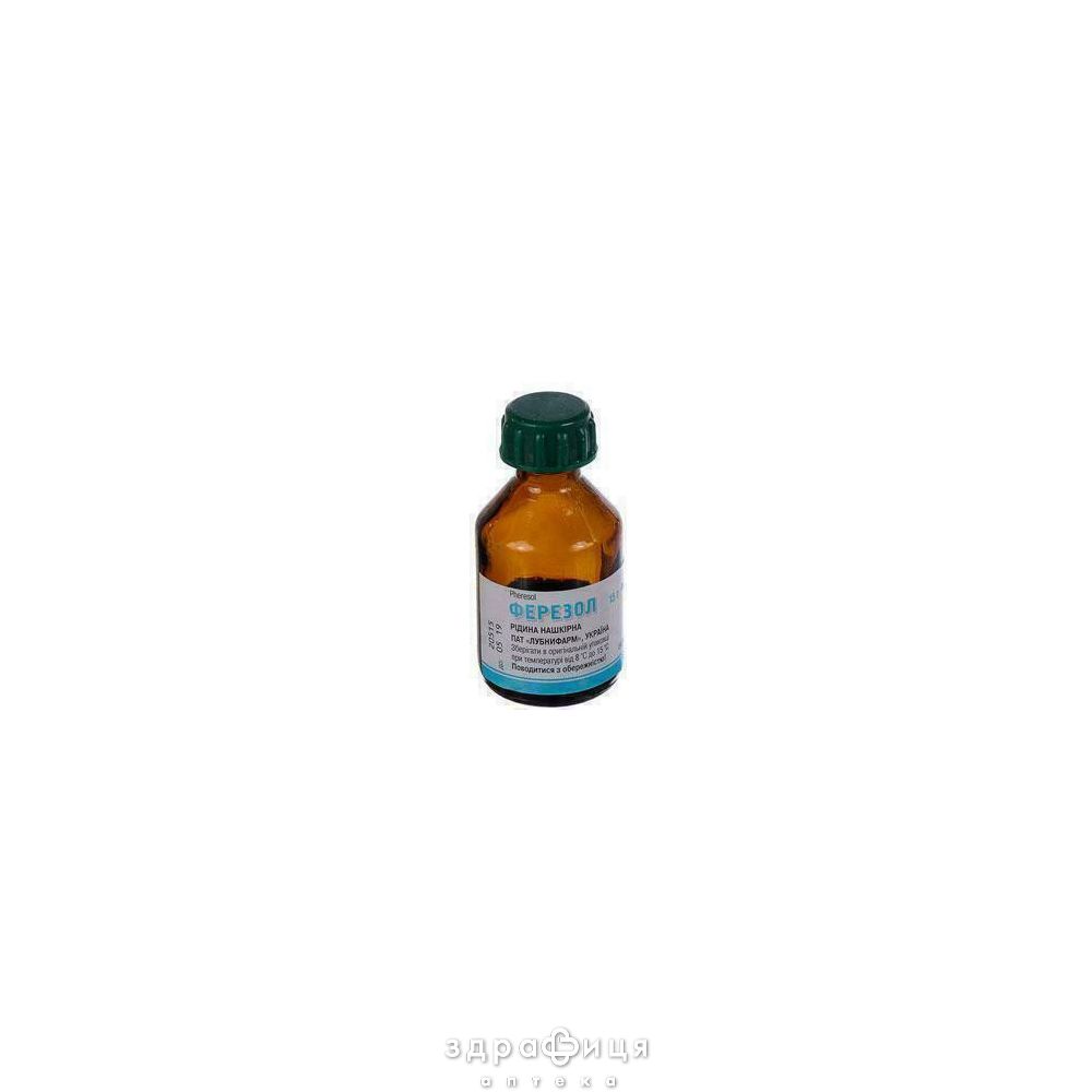 Ферезол – комбінований препарат, що чинить припікальну та бактерицидну дію. Механізм протимікробної дії полягає у необоротній коагуляції білків, які входять до складу життєво важливих структур збудника (цитоплазматичної мембрани, джгутиків), що призводить до втрати функцій, які вони виконують, та загибелі мікроба. Препарат не має вираженої вибірковості відносно певних видів мікробів, активний відносно грампозитивних, грамнегативних бактерій, грибів, вірусів, найпростіших. Механізм припікальної дії зумовлений деструкцією макромолекул клітин та волокон шкіри і слизових оболонок (хімічний опік). При контакті з тканинами організму спричиняє хімічні опіки.