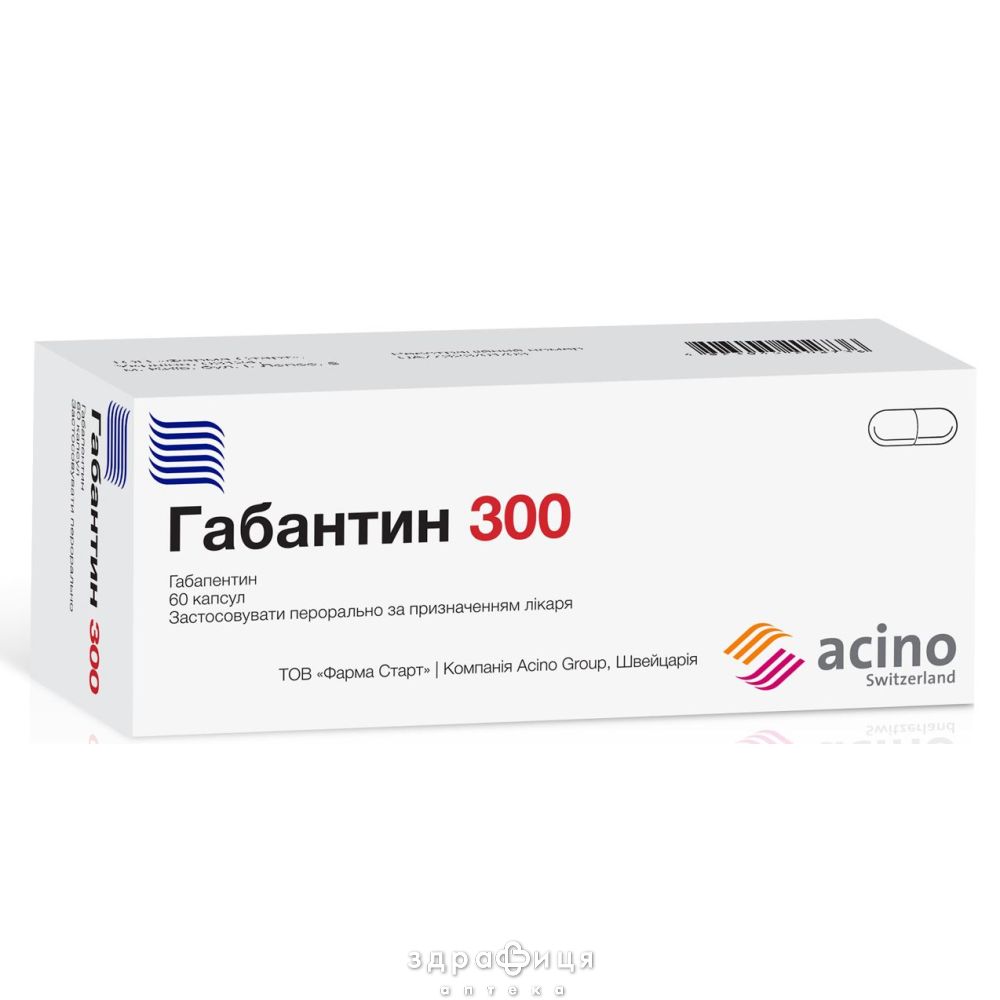 Склад | 1 капсула містить 300 мг габапентину у перерахуванні на 100 % безводну речовину |