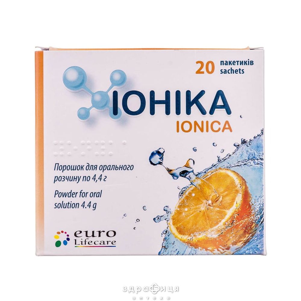 Розчин препарату Іоніка, відповідно до рекомендацій ВООЗ, має знижену осмолярність, що становить 245 мОсм/л, рH ‒ слабколужна. Розчин препарату застосовується для коригування втрати електролітів і рідини при діареї. Глюкоза сприяє абсорбції солей, цитрати допомагають відкоригувати баланс при метаболічному ацидозі.