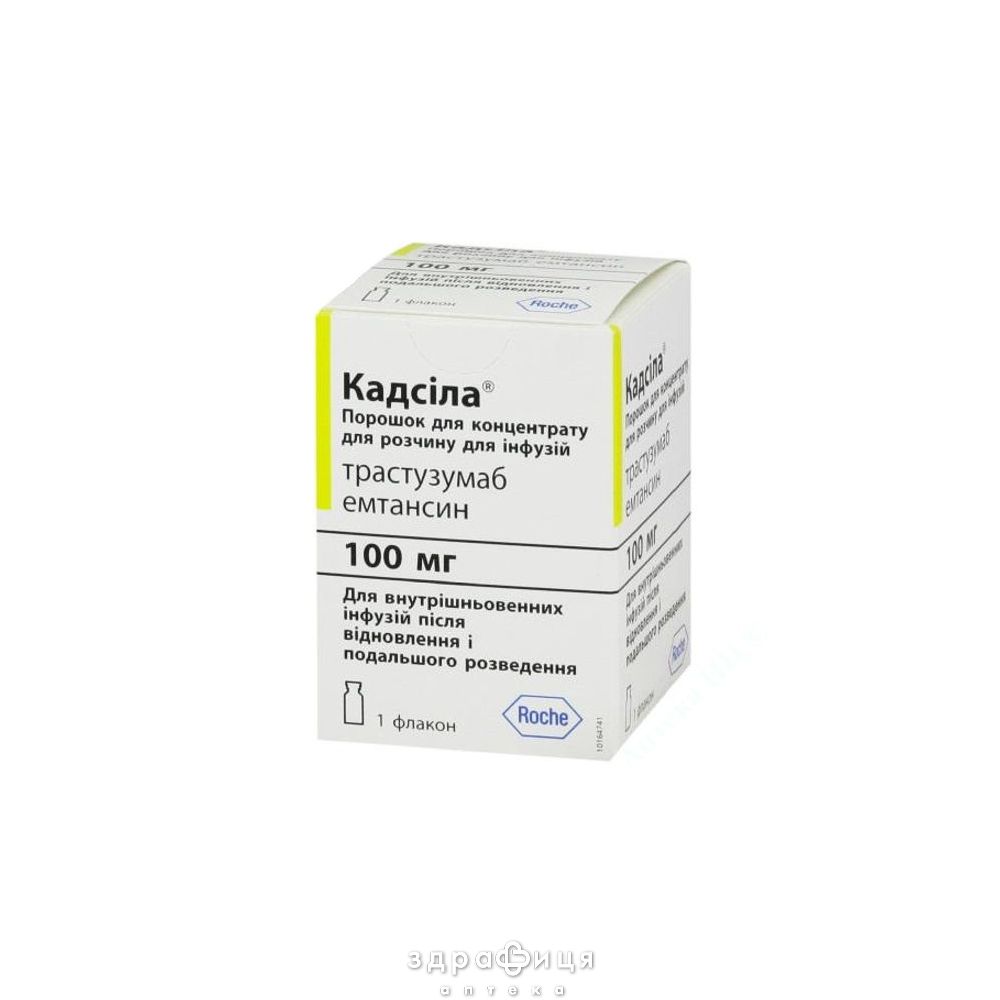 | Склад | 1 флакон містить трастузумабу емтансину 100 мг для приготування 5 мл концентрату для інфузій із вмістом трастузумабу емтансину 20 мг/мл |