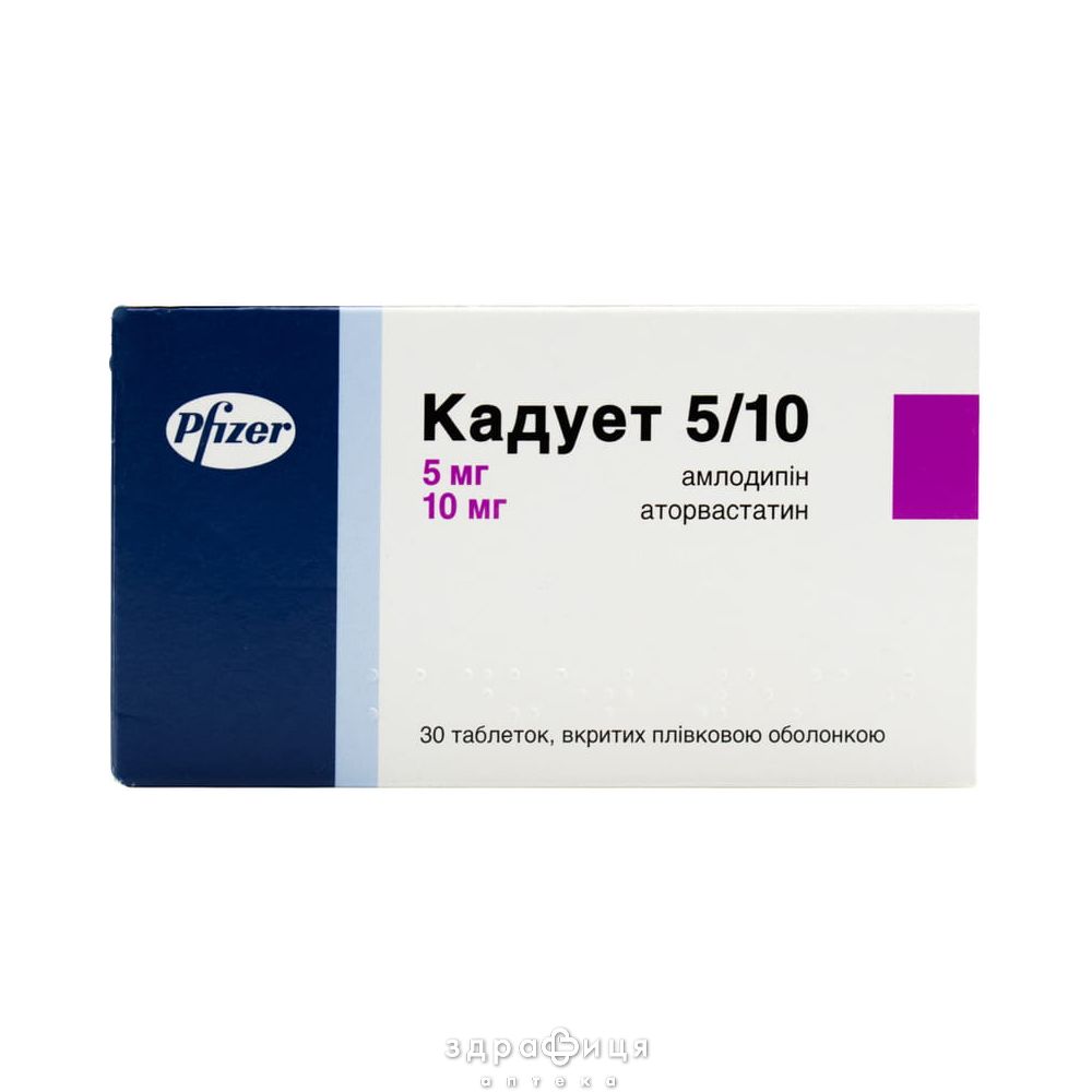 Після перорального прийому спостерігалися 2 окремих піки концентрацій у плазмі крові. Перший пік спостерігався у межах від 1 до 2 годин після прийому препарату та був зумовлений аторвастатином; другий пік спостерігався між 6 і 12 годинами після прийому препарату та був зумовлений амлодипіном. Швидкість і ступінь абсорбції (біодоступність) амлодипіну та аторвастатину при застосуванні препарату Кадует 5/10 несуттєво відрізняються від біодоступності амлодипіну та аторвастатину при одночасному застосуванні таблеток аторвастатину і таблеток амлодипіну.