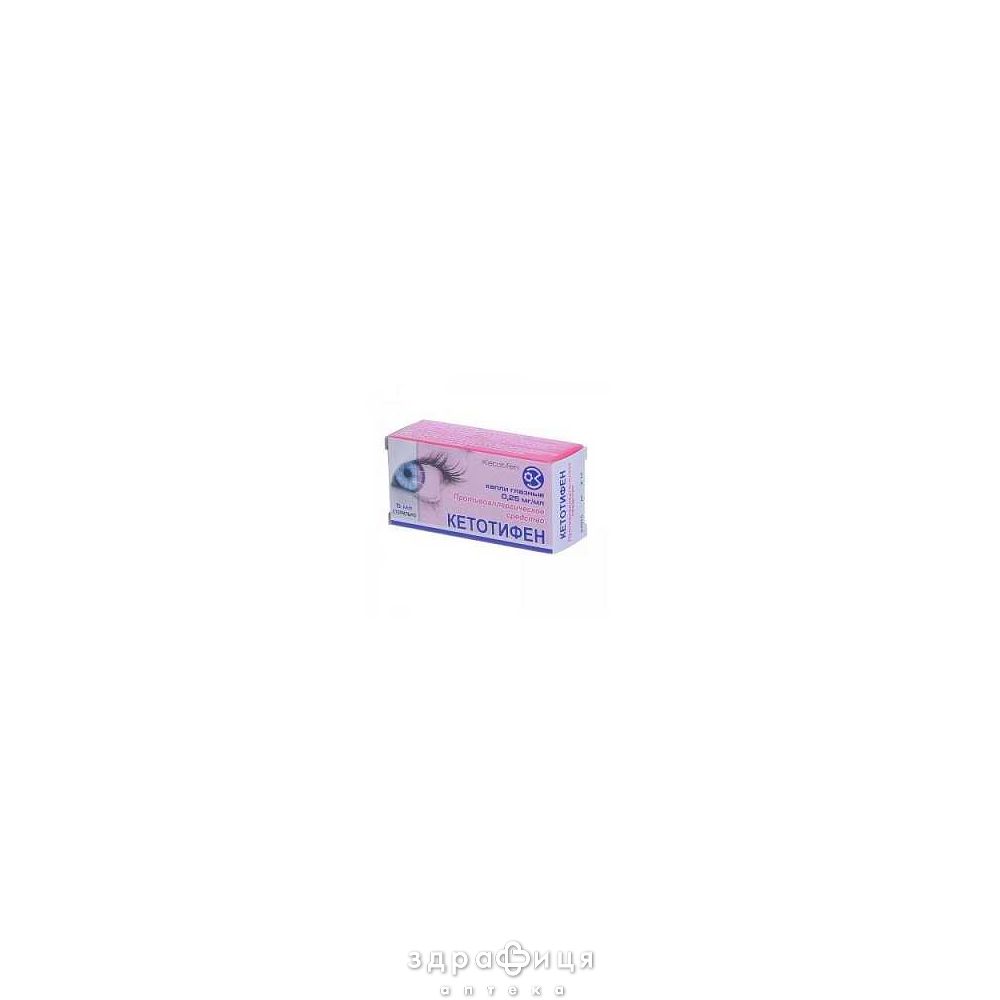 Фармакодинаміка. Кетотифен має виражену протиалергічну та антигістамінну активність, є блокатором Н1-гістамінових рецепторів. Механізм дії зумовлений здатністю гальмувати вивільнення гістаміну та інших медіаторних речовин (лейкотрієнів, простагландинів, а також повільно реагуючої субстанції анафілаксії) з опасистих клітин. Кетотифен також зменшує хемотаксис, активацію та дегрануляцію еозинофілів, інгібує фосфодіестеразу, внаслідок чого збільшується кількість цАМФ, стабілізуючи мембрани опасистих клітин.