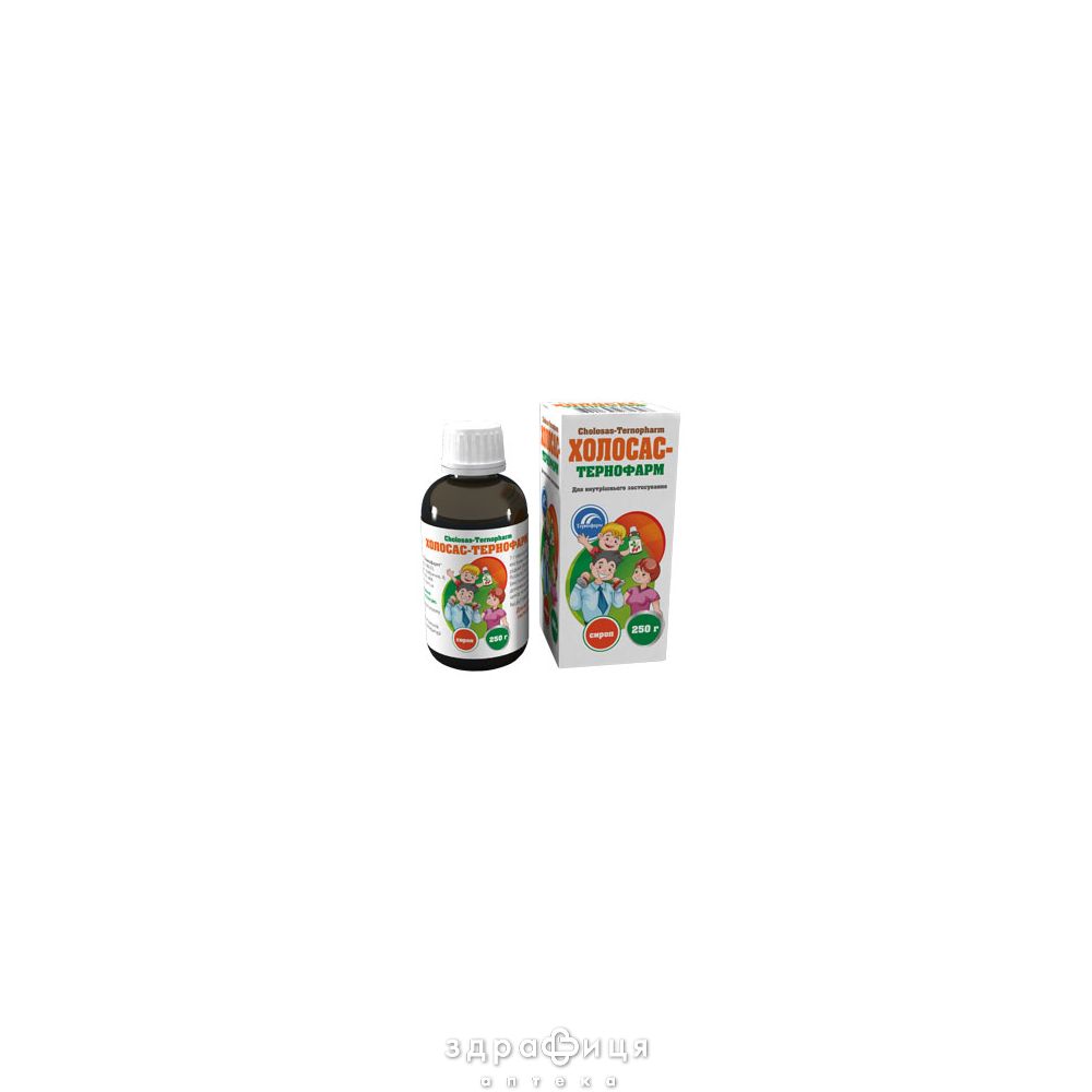 Холосас-Тернофарм підвищує функціональну здатність печінки, збільшує секрецію жовчі, збільшує вміст у жовчі холатів, зменшує в’язкість жовчі. Жовчогінна дія препарату зумовлена вмістом флавоноїдів. Екстракт шипшини, що входить до складу препарату Холосас-Тернофарм, має також вплив і на інші функції організму: нормалізує і стимулює секрецію залоз шлунка, підвищує ферментативну активність шлункового соку, посилює перистальтику кишечника при його атонії. Також сприяє протизапальній дії за рахунок вмісту аскорбінової кислоти (вітаміну С).