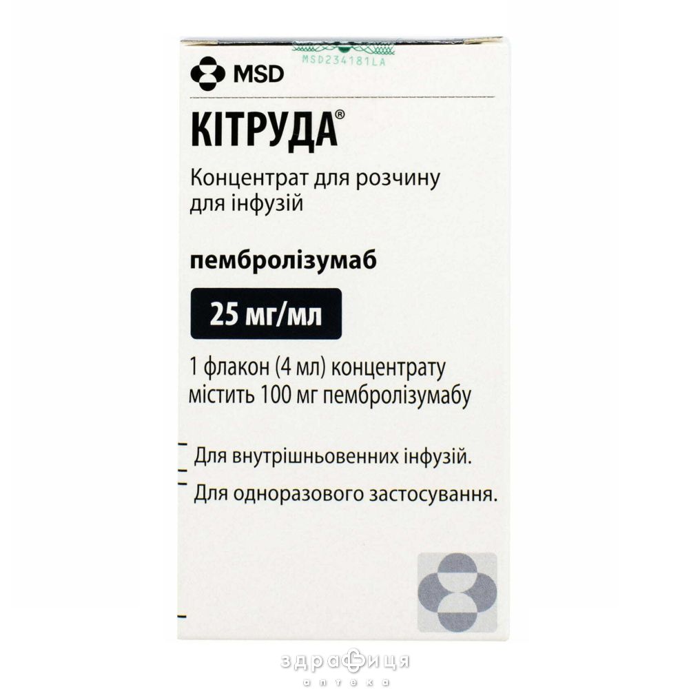 | Склад | 1 мл концентрату містить 25 мг пембролізумабу, /1 флакон (4 мл) концентрату містить 100 мг пембролізумабу |