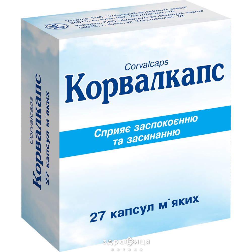 Корвалкапс – заспокійливий і спазмолітичний засіб, дія якого визначається компонентами, що входять до його складу.