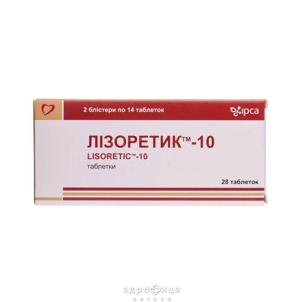 1 таблетка (Лізоретик™ – 10) містить: лізиноприлу дигідрату у перерахуванні на лізиноприл 10 мг та гідрохлортіазиду 12,5 мг.