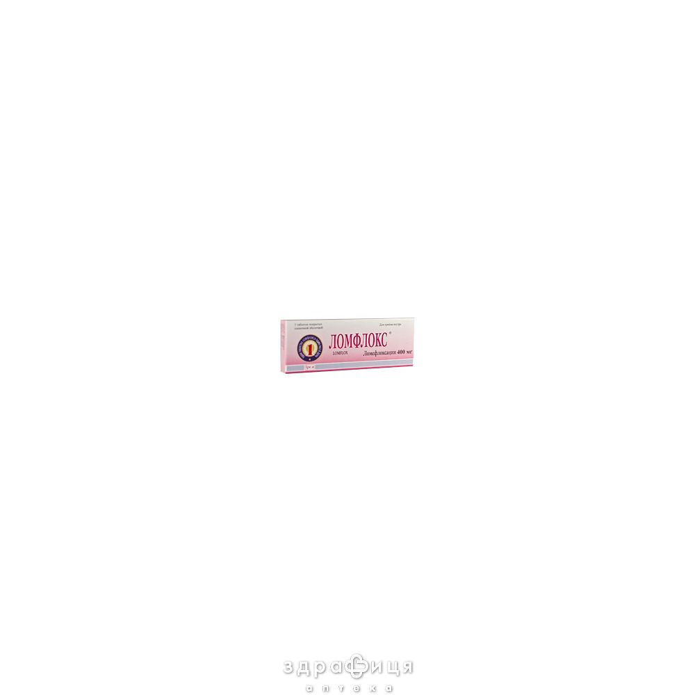 Основні фізико-хімічні властивості: білого або майже білого кольору, капсулоподібні таблетки, вкриті плівковою оболонкою, з рискою на одному боці і монограмою LOMFLOX 400 на іншому боці.
