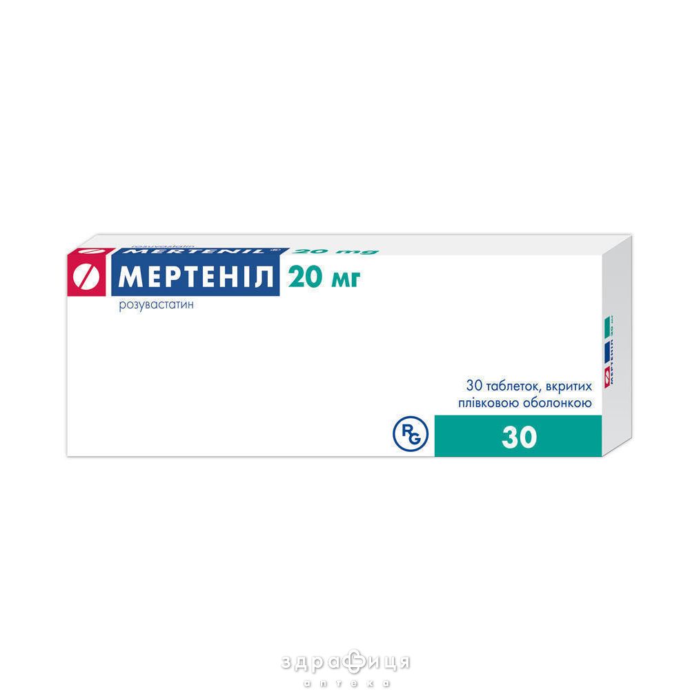 Препарат Мертенiл поставляється у формі таблеток, вкритих плівковою оболонкою. Кожна таблетка містить 20 мг розувастатину. Препарат упакований по 10 таблеток у блістері, а кожний блістер розміщений у картонній упаковці.