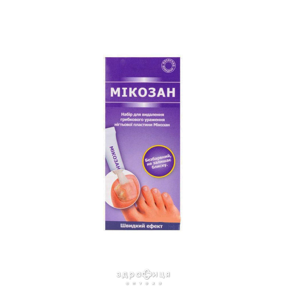 При нанесенні на ніготь Мікозан утворює водорозчинну плівку, що покриває його поверхню і глибоко проникаючи в товщу, підвищує щільність структур нігтьових пластин, знижує їх пористість, а також формує захист від впливу патогенних грибів, створюючи умови, несприятливі для їхнього росту.