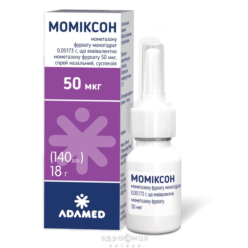 | Склад | 1 доза спрею містить мометазону фуроату моногідрат 0.05173г, що еквівалентно мометазону фуроату 50 мкг |