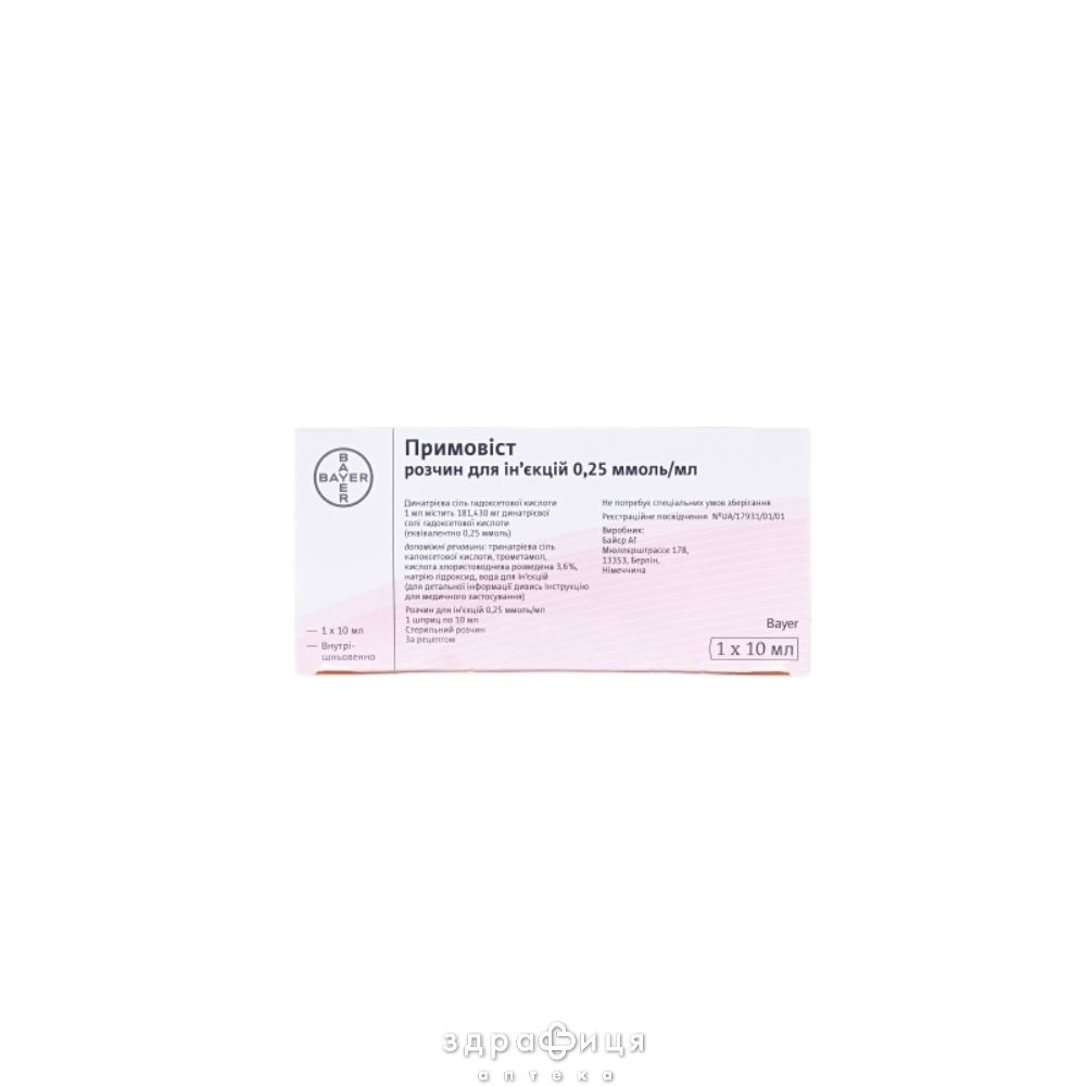 | Форма випуску | розчин для ін'єкцій 0,25 ммоль/мл; по 10 мл у скляному шприці, по 1 шприцу в прозорій пластиковій коробці, закритій папером, по 1 пластиковій коробці |
