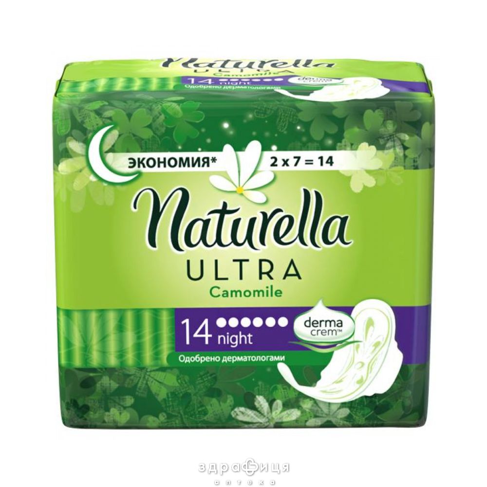 Прокладки гiгiєнiчнi naturella ultra camomile night з крильцями №14
