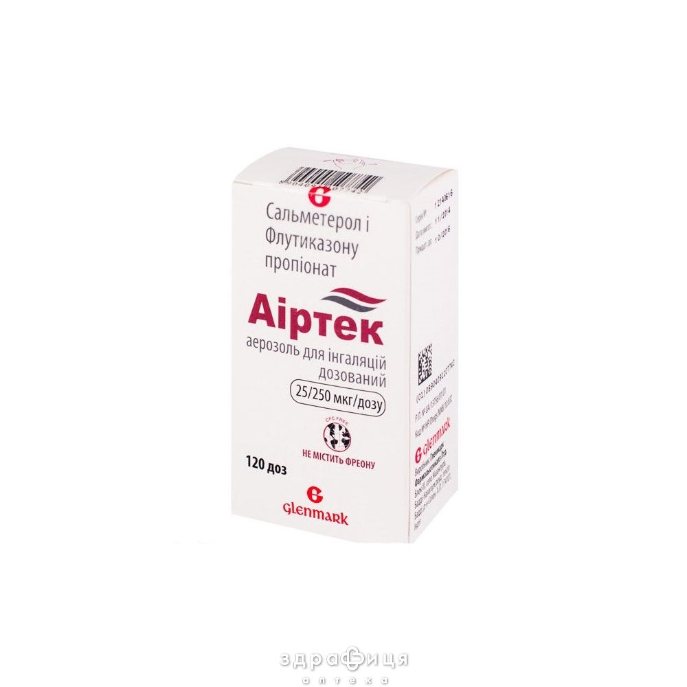 Форма выпуска | аерозоль для інгаляцій дозований, 25/250 мкг/дозу, по 120 доз в алюмінієвому контейнері з дозуючим клапаном і розпилюючою насадкою з захисним ковпачко |