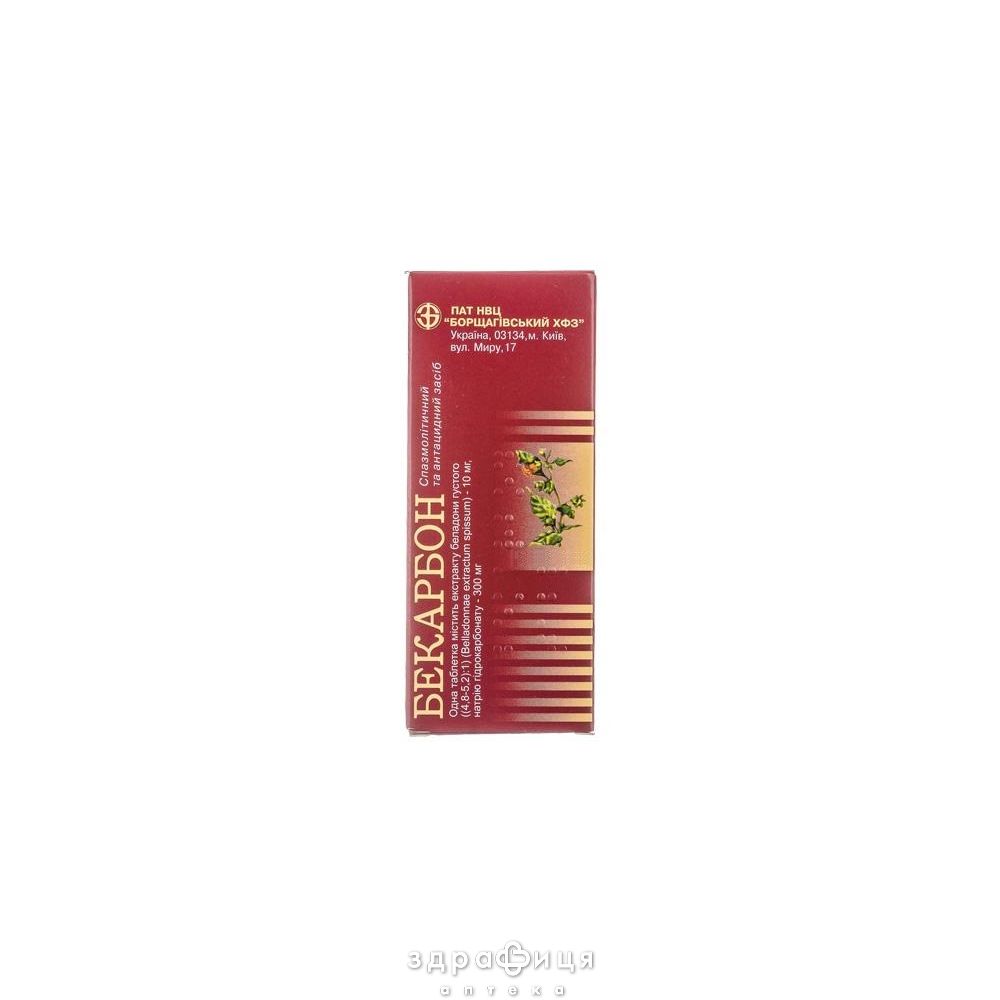 При одновременном применении с другими препаратами с антихолинергическими эффектами действие Бекарбона может быть усилено. Угнетение перистальтики под действием препарата может привести к изменению всасывания других препаратов.