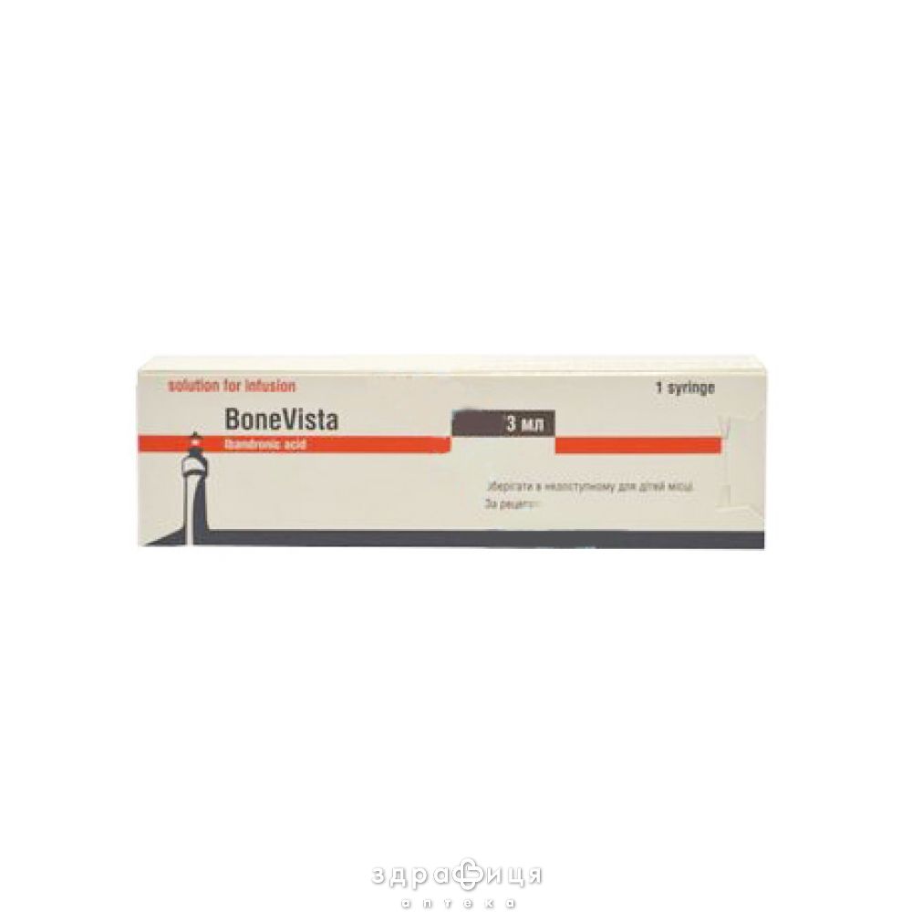 | Состав | 1 попередньо наповнений шприц (3 мл розчину) містить ібандронової кислоти 3 мг у формі натрію ібандронату моногідрату 3,375 мг |