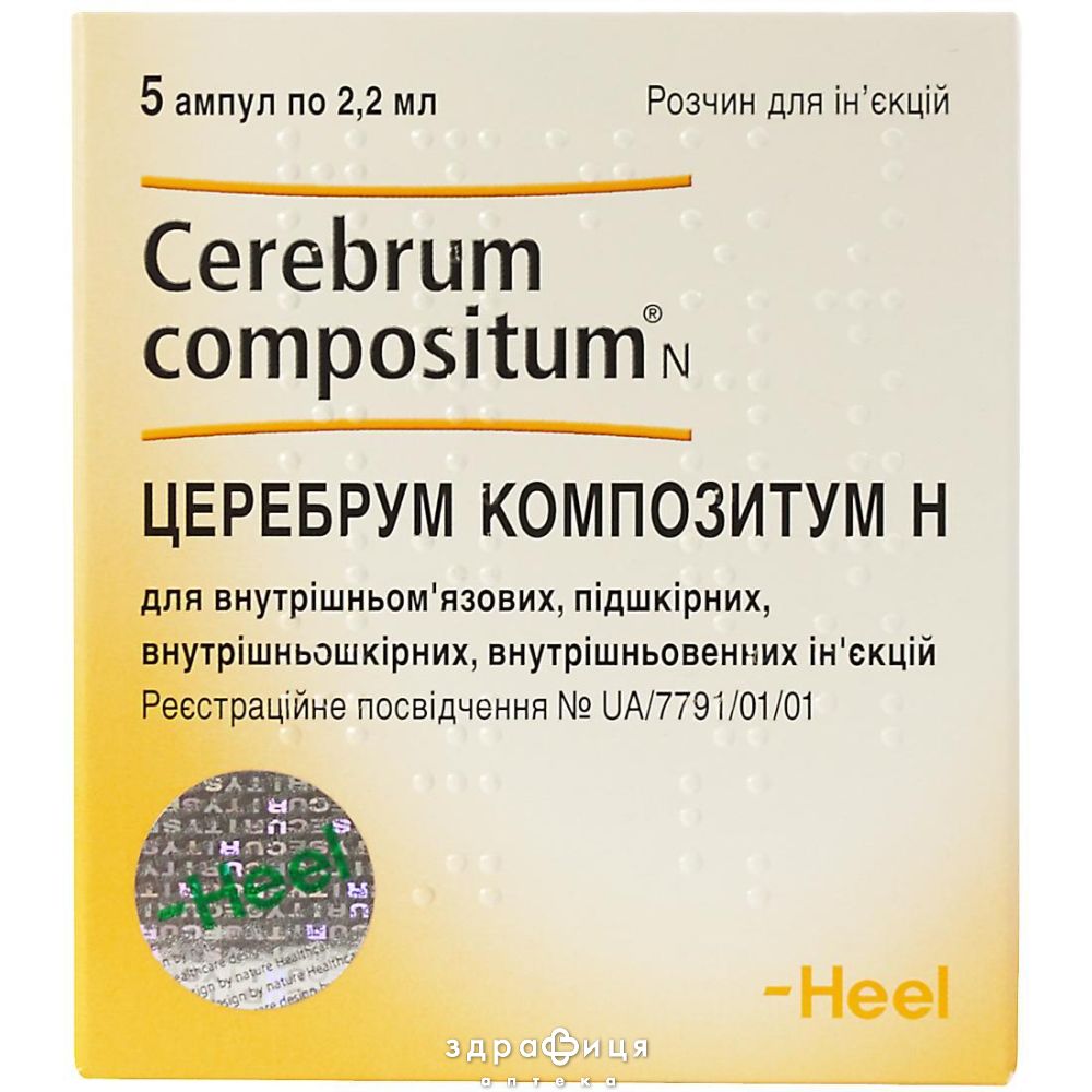 действующие вещества: 2,2 мл раствора содержат: Acidum phosphoricum D10 – 22 мг, Aconitum napellus D6 – 22 мг, Aesculus hippocastanum D4 – 22 мг, Ambra grisea D10 – 22 мг, Anamirta cocculus D2 – 2 мг, Bothrops lanceolatus D10 − 22 мг, Серебрум suis D8 − 22 мг, Cinchona pubescens D4 − 22 мг, Conium maculatum D4 − 22 мг, Embryo totalis suis D10 − 22 мг, Gelsemium sempervirens D1 − 2 мг, Hyoscyamus niger D6 − 22 мг, Калиум бистромикум D8 − 22 мг, Калиум фосфорицум D6 − 22 мг, Magnesium phosphoricum D10 − 22 мг, Manganum phosphoricum D8 − 22 мг, Medorrhinum No 2 мг, Ruta graveolens D4 – 22 мг, Selenium D10 – 22 мг, Semecarpus anacardium D6 – 22 мг, Strychnos ignatii D8 – 22 мг, Sulfur D10 – 22 мг, Thuja occidentalis D6 – 22 мг;