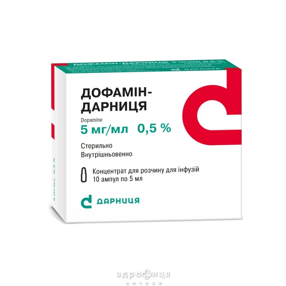 | Состав | 1 мл концентрату містить дофаміну гідрохлориду 5 мг |