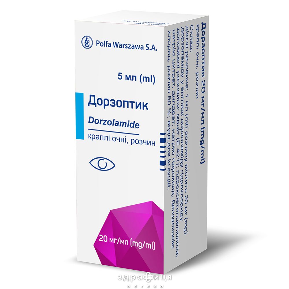 Состав | 1 мл розчину містить 20 мг дорзоламіду у вигляді дорзоламіду гідрохлориду |