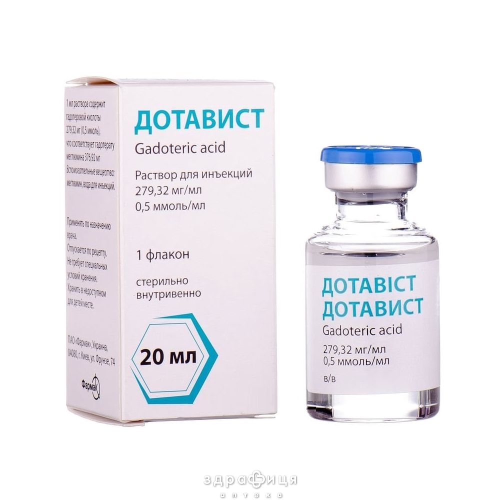 Ангиография: в исключительных случаях (например, невозможность получить изображение надлежащего качества большого сосудистого участка) может быть оправданным введение второй последовательной инъекции 0,1 ммоль/кг, то есть 0,2 мл/кг. Однако, если перед началом ангиографии отдельных участков (как артерии ног или легкого) предусматривается применение 2 последовательных доз препарата Дотавист, возможно применение 0,05 ммоль/кг, то есть 0,1 мл/кг, препарата в каждой дозе, в зависимости от доступного оборудования для обработки изображений.
