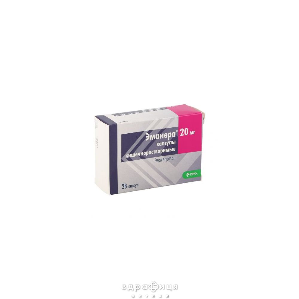 | Состав | 1 капсула кишковорозчинна містить 20 мг езомепразолу (у вигляді езомепразолу магнію дигідрату) |