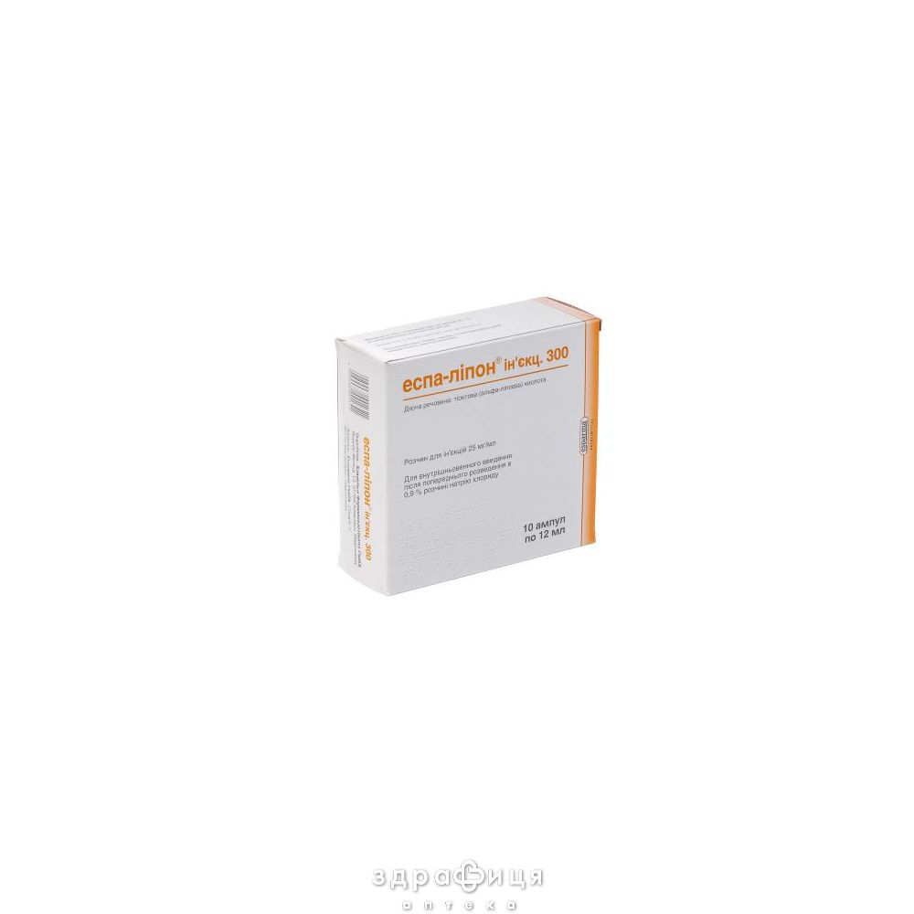 Состав | 1 ампула препарату Еспа-ліпонін'єкц. 300 (12 мл) містить 377 мг етилендіамінової солі кислоти тіоктової (еквівалентно 300 мг кислоти тіоктової) |