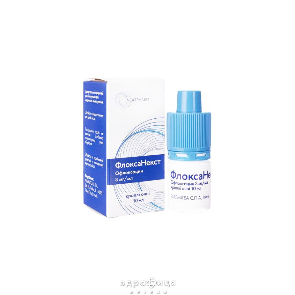 Торговое название ФЛОКСАНЕКСТ Тип упаковки КАПЛИ Форма выпуска краплі очні, розчин, 3 мг/мл; по 10 мл у флаконі-крапельниці; по 1 флакону-крапельниці в пачці Международное непатентованное наименование (МНН) Ofloxacin Анатомо-терапевтическо-химическая (АТХ) классификация S - Препараты для лечения заболеваний органов чувств
