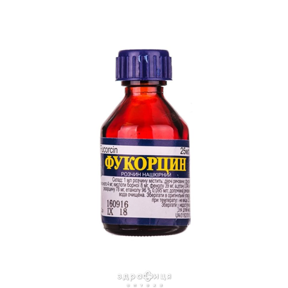 Состав | 1 мл розчину містить: фуксину основного – 4 мг, кислоти борної – 8 мг, фенолу – 39 мг, ацетону – 0,049 мл, резорцину – 78 мг, етанолу 96 % – 0,095 мл |