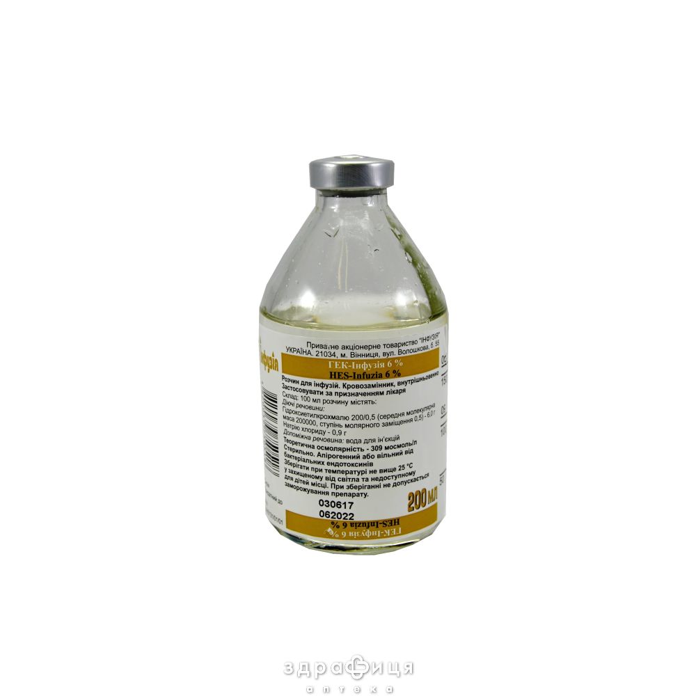 100 мл раствора содержат: гидроксиэтилкрахмала 200/0,5 (средняя молекулярная масса 200000, степень молярного замещения 0,5) – 6,0 г или 10,0 г, натрия хлорида – 0,9 г;