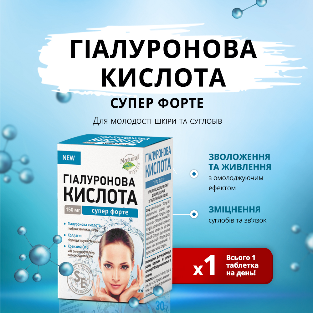 Гиалуронова кислота супер форте таблетки 1000мг №30