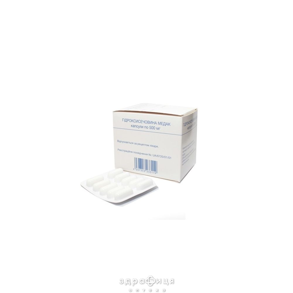 Состав | 1 капсула містить 500 мг гідроксикарбаміду (гідроксисечовини) |