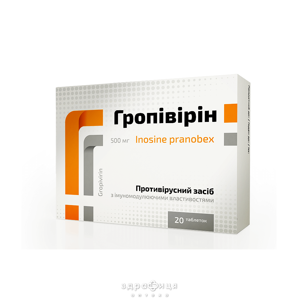 Гропивирин – противовирусное средство с иммуномодулирующими свойствами. Препарат нормализует (до индивидуальной нормы) дефицит или дисфункцию клеточного иммунитета, индуцируя дозревание и дифференцирование Т-лимфоцитов и Т1-хелперов, потенцируя индукцию лимфопролиферативного ответа в митогенных или антиген-активных клетках. Гропивирин моделирует цитотоксичность Т-лимфоцитов и натуральных киллеров, функцию Т8-супрессоров и Т4-хелперов, а также увеличивает количество иммуноглобулина G и поверхностных маркеров комплимента. Гропивирин увеличивает синтез интерлейкина-1 (IL-1) и синтез интерлейкина-2 (IL-2), регулирует экспрессию рецепторов IL-2. Гропивирин существенно увеличивает секрецию эндогенного гамма-интерферона и уменьшает продуцирование интерлейкина-4 в организме. Гропивирин усиливает действие нейтрофильных гранулоцитов, хемотаксис и фагоцитоз моноцитов и макрофагов. Гропивирин угнетает синтез вируса путем встраивания инозин-оротовой кислоты в полирибосомы пораженной вирусом клетки и угнетает присоединение адениловой кислоты к вирусной и-РНК.