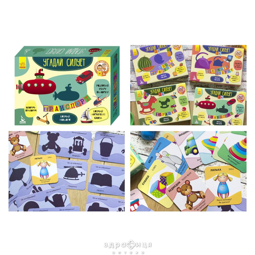 Книга кенгуру угадай силуэт 2+ транспорт 30 карточек (укр)