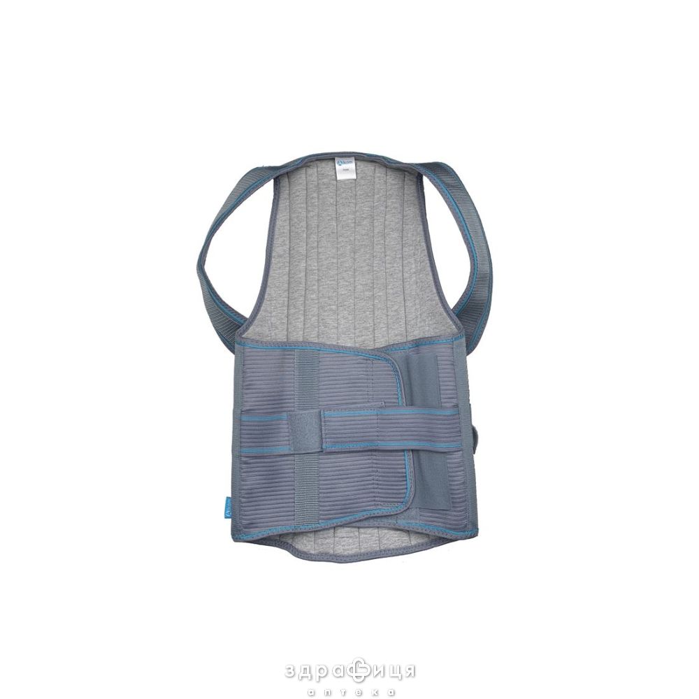 Корректор жестко и надежно фиксирует позвоночник, уменьшает или снимает болевой синдром, снимает нагрузку со связно-суставного аппарата грудного и поясничного отделов позвоночника и мышц спины. Шесть ребер жесткости, кроме того, что оказывают спине поддержку, не позволяют корсету скручиваться и смещаться. Ткань из которой изготовлено изделие хорошо пропускает воздух и отводит влагу наружу корсета, поэтому кожа остается сухой и не раздражается. Алюминиевые ребра жесткости моделируются индивидуально по фигуре пользователя, поэтому эта модель не только эффективна, но и очень удобна.