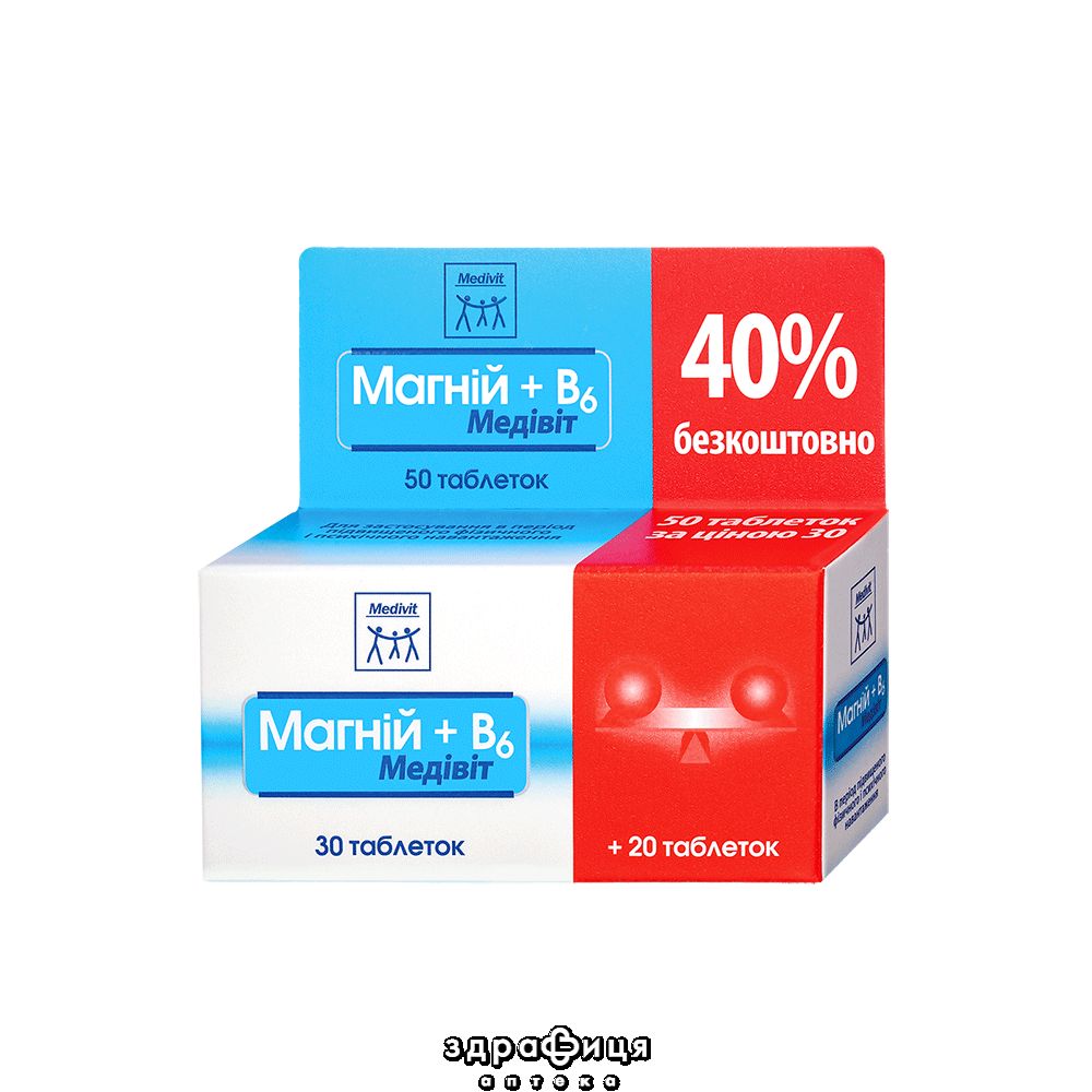 Магний + В6 Медивит может быть рекомендовано в качестве диетической добавки к основному рациону питания, дополнительного источника магния и витамина В6 в период интенсивной физической и умственной работы, при состояниях усталости, тревожности, нарушениях сна.