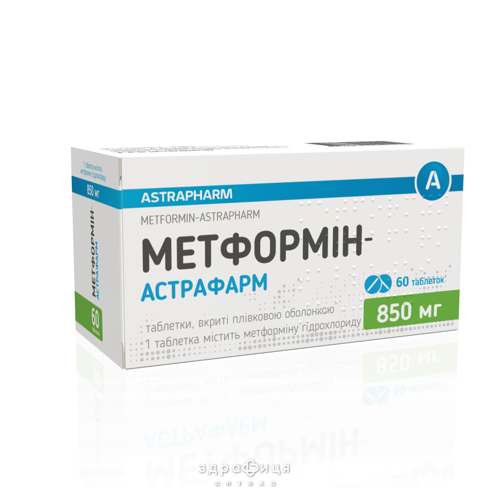 Состав | 1 таблетка містить метформіну гідрохлориду 850 мг |