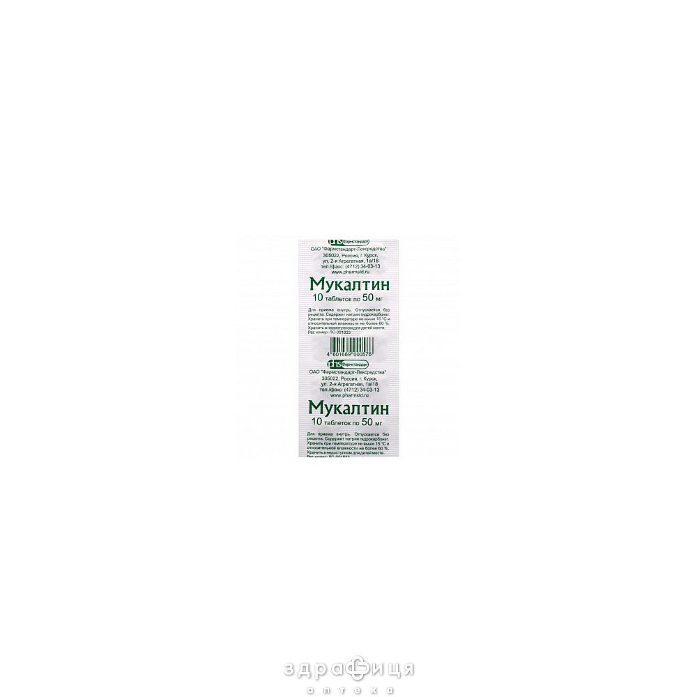 Состав | 1 таблетка містить мукалтину у перерахуванні на суху речовину 50 мг |