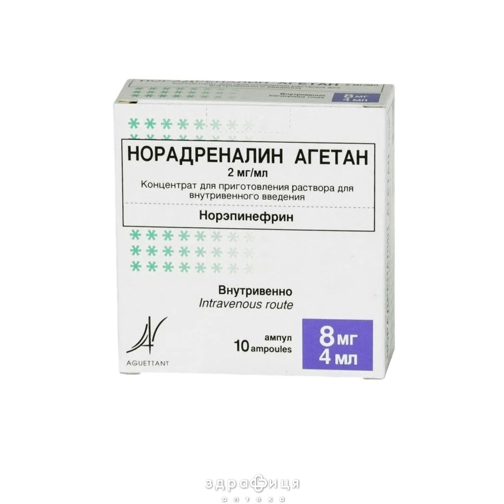 Норадреналина тартрат агетан конц д/р-ра д/инф б/сулфит 2мг/мл 4мл №10