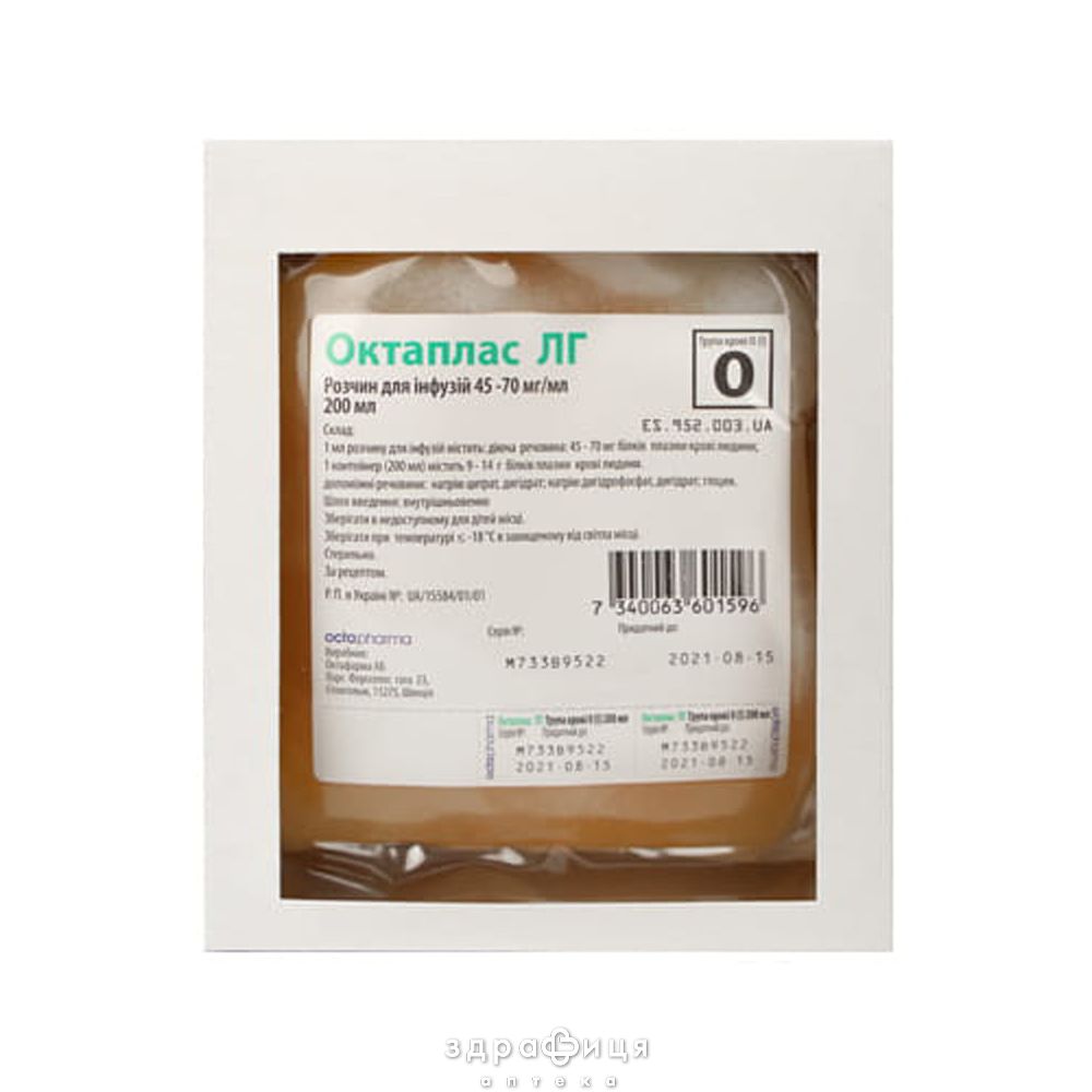 Октаплас ЛГ поставляется в виде замороженного раствора, который может быть слегка желтого цвета.