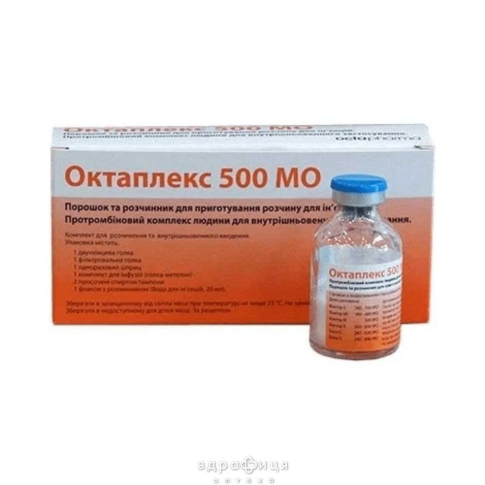 Форма выпуска | порошок та розчинник для розчину для інфузій по 500 МО; дві коробки об’єднуються між собою пластиковою плівкою: картонна коробка №1: по 1 флакону з по |