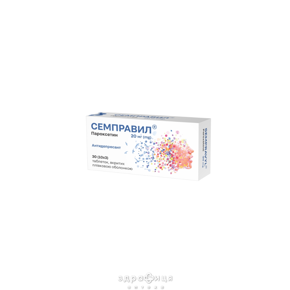 1 таблетка, покрытая плёночной оболочкой, содержит пароксетина гидрохлорида полугидрата в пересчете на пароксетин 20 мг;